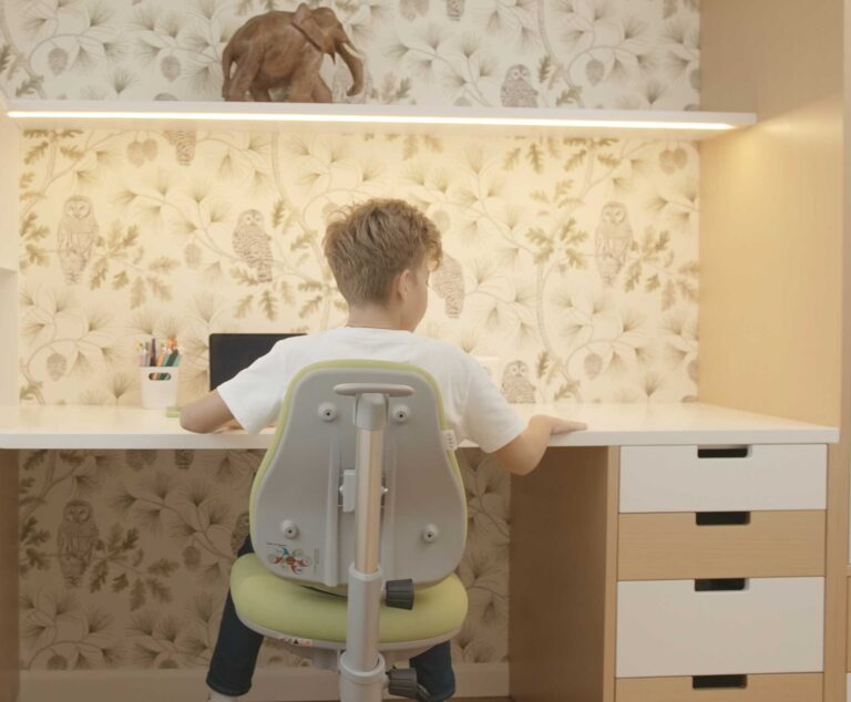 The kitchen island makes a perfect homework spot with plenty of room for books and supplies. Parents can help with assignments while cooking when young children use a small desk at the counter’s end. Your child’s focus and output will improve with: